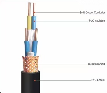 | KVVP | Copper core PVC insulated PVC sheathed braided shielded control cable | Braided shielding | General industrial control and monitoring circuits | GB/T 9330 |